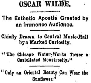 Oscar Wilde, in the city to deliver a lecture entitled "The English Renaissance," famously offended Chicagoans by referring to the beloved structure as a "castellated monstrosity with pepper boxes stuck all over it."
