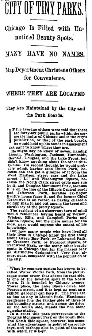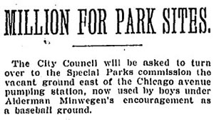 ![]() By permission and courtesy of the Chicago Park District Special Collections. This photograph from the Chicago Park District Special Collection illustrated the Chicago Daily Tribune story about the marble contest held in Lake Shore Park. |